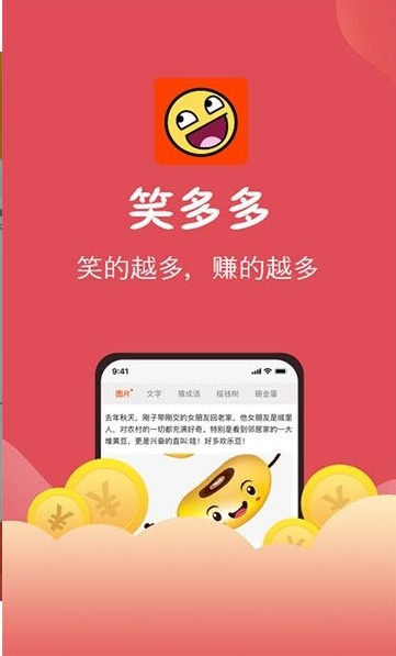 笑多多app是一款非常好笑的网赚手机应用软件。生活里不一定每天都有开心的事情发生,可是每天工作都已经这么辛苦了,难道不能让自己开心一下吗?当然有,来笑多多,海量的搞笑图片,逗趣段子,幽默视频,轻松让你捧腹大笑。最重要的是,笑完了还有钱拿呢!是不是瞬间喜悦翻倍了!心动不如行动,有兴趣的朋友赶紧来下载了解一下吧!
