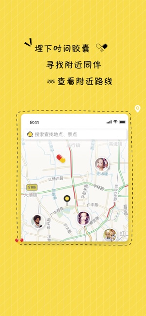 1、实时定位搜索附近的好友,相约一起踏上愉快地旅行;