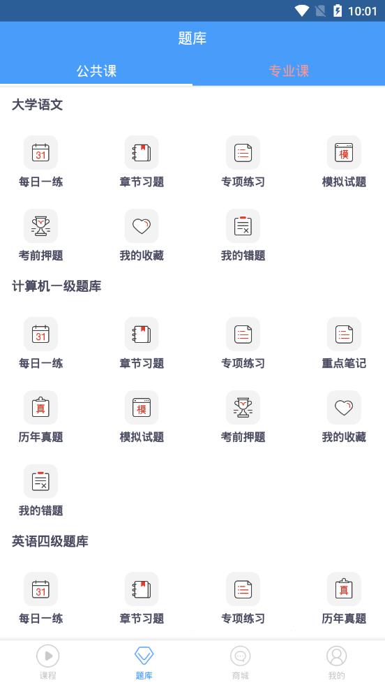 1.在线进行模拟考试,与正常考试的题目题型都是一样的;