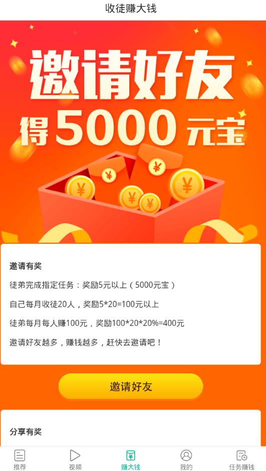 2.邀请好友奖励3-30元现金,超高收益躺着赚钱。