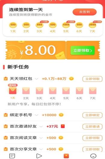 1、只要能够完成日常每天的任务,或者是新手任务,邀请好友,都可以得到超多金币奖励。