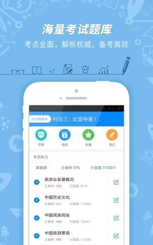 导考百分百app是一款让学生们更好的去复习备考的软件,这里有特别资深的老师指导学生们去复习,相关的教材资源也是有很多的,而且这里的题库涵盖的点会非常的多,让学生们可以更快的适应模拟考试的场景,更轻松的去考试答题!这里有海量的针对导游的教育课程,用户可以在这里快速地学习到很多有关导游方面的知识,并提升自己的导游能力,对导游资格考试也有很大的帮助。为学生们准备了众多的学习周边的相关的资源,还能有海量的视频能进行线上的观看。搜集了全国相关方面的考试试题,超仿真的模拟题库,帮助用户进行更轻松的通过考试。