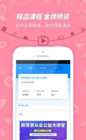 导考百分百是一款专为全国导游资格考试提供线上学习服务app,拥有海量学习视频资源和知识资料,还有丰富的题库内容,全面为用户提供学习培训服务,提供许多免费资料可以随心查阅,让您拥有更多免费学习资源,在题库专区,自由选择题库作答,安排每日的答题目标,轻松积累习题知识,高效复习知识内容,让您离考试顺利通关更进一步,而且随时随地的刷题,让您拥有更多学习的时间,学习工作两不误,除此之外,还有系统的学习培训课程,通过全面的知识教学,让您考试更轻松。