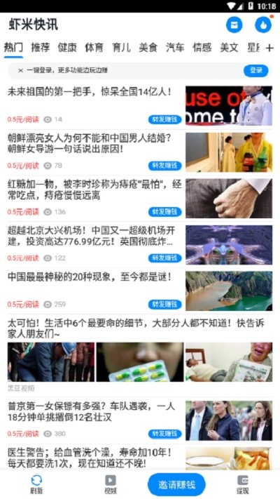 精选海量有趣头条资讯,不出门闻天下事。不仅如此,阅读资讯还能赚取金币,金币可以直接兑换,又能了解知识,又能赚钱,简直不能更棒了!