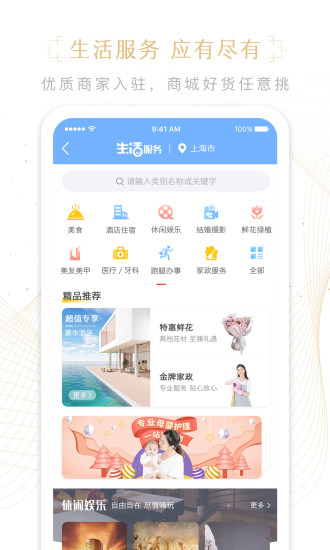 1、这里分类很齐全,有美食、酒店住宿、休闲娱乐、结婚摄影、鲜花绿植、美发美甲、医疗等;