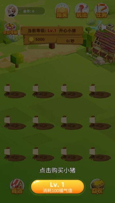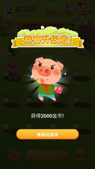3、我们还可以通过升级小猪来更快的获得金币。