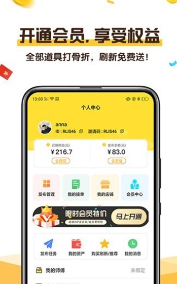 2、在这里还支持一键抢单,你能够轻松的抢到自己喜欢的任务,完成之后就有佣金到账;