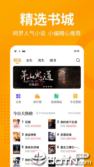 3.全面的小说类型:玄幻、都市、言情、武侠、科幻、军事、职场励志应有尽有;
