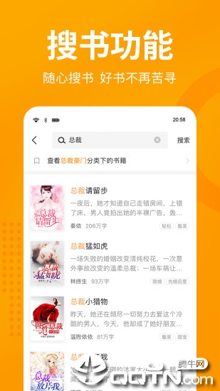 1.海量资源:来自互联网海量小说搜索资源,即搜即得;