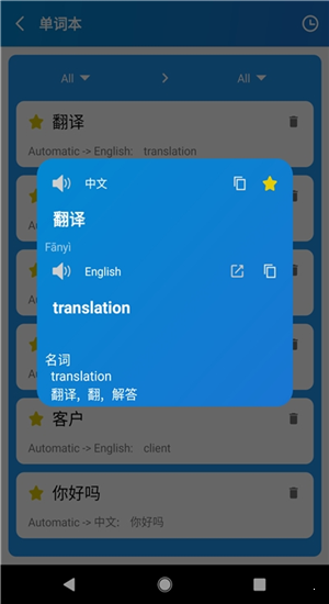 文本翻译器app是一款专门为用户们提供的文本翻译软件,它非常的好用,能够帮助用户们拍照记录文字内容,并且能够支持中文,中文繁体,英语,日语,法语,德语等多种语言的翻译!不仅可以翻译,还可以提取图片文字。只要检测到图片上有中文文字就可以提取,而且也会显示英文翻译自由收藏,支持离线翻译,让你随时随地都能进行翻译,支持在线编辑,自动复制粘贴,将文本复制到剪切板中,方便实用,提高你的工作效率和质量。需要的用户不要错过。