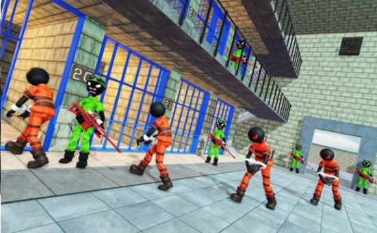 2、所有的罪犯都由火柴人扮演。穿上橙色的连身衣,你和差人一同护卫监犯。