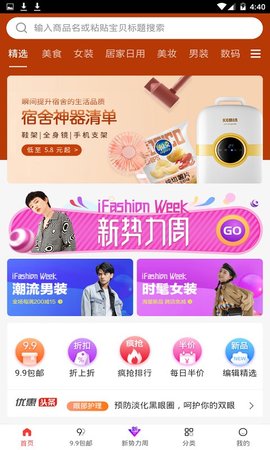 1、商品专区十分齐全,包括服装专区、美食专区、日用商品专区等。