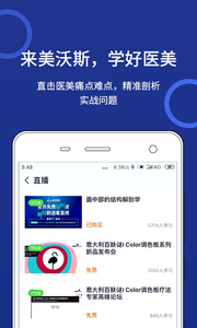 美沃斯app是一款专注于一枚行业的服务软件,集合精品课、商学院、资讯等信息为一体,用户可以在线听讲座,每日热门课程实时更新,帮助用户掌握更多有用信息;为您提供最新消息最优秀的整形美容资讯新闻和技术性信息内容,也有大量权威性医药学组织免费在线开展直播间,著名权威专家讲解整形知识,开展学术研究的探讨,为客户出示更技术专业的整形知识和贴心服务。