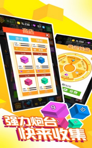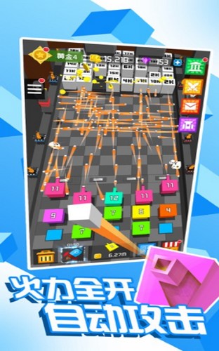 1、世界方块自在的移动,护卫你的堡垒,晋级炮台和塔防抵御敌人的进犯,主动射击闯关;