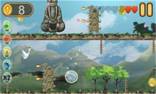 鹅跑酷游戏是一款非常好玩的休闲益智类手机游戏,鹅跑酷游戏的画面很是清新简约,在鹅跑酷里玩家的角色是一只大鹅,玩家需要在鹅跑酷里不断地进行跑酷,鹅跑酷里会有大量的障碍物会给玩家造成阻碍!鹅跑酷玩家需要控制这只大白鹅在各种场景里进行冒险跑酷,非常多的障碍物以及陷阱在等待着大白鹅,用沿途的道具来破坏障碍物,当你在规定时间内逃离目的地就通关了,你可以通过完成任务收集更多的车辆,让你的车提高速度,收集更多金币,获得更高的分数,让我们一起体验吧,顺便收集金币,金币可以在商店中购买护盾等道具。