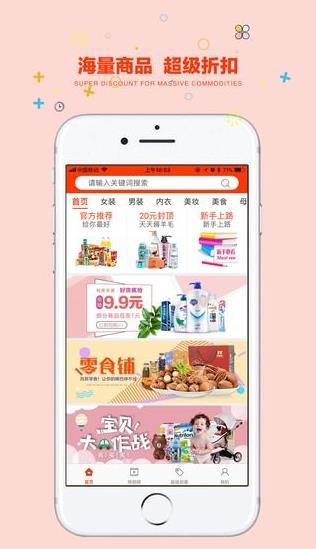 实用性超高的网购平台,能让大家都放心大胆的享受便利的在线购物服务。而且平台上提供的产品都通过检测,能够确保商品都来自第一手厂家,都属于真品!除此之外就算使用起来感觉有问题,我们也可以在7天内直接申请退货,平台都会受理。人们都可以放心的来这里挑选商品加入购物车。而且软件还有一项特色,就是返利赚钱,大家购物确认收货后,软件按照支付的价格返还一定比例的金额。配合优惠券使用的话,我们可以让自己节省更多的资金,非常实用!