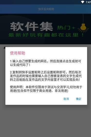 反向昵称app是一款帮助用户生成搞笑好玩的昵称的平台,这里面的昵称都是自动生成的哦,而且都是反向的用词,听起来超级的搞笑有意思,让用户的昵称直接就显得非常有个性了。在用户登陆之后,平台会自动弹出来一个使用的说明,让大家都能够在这里看到使用的方法,就不会出现不知道怎么用的情况了,真的超级的贴心人性化。总体来说是一款非常不错的反向名字设置的软件,体积十分的小,不会占用太多的内存空间,而且操作起来的方式也非常的轻松,没有任何的难点,喜欢的亲们赶紧下载吧。