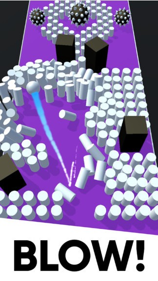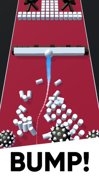 1.玩家在游戏中控制白色球撞击前方的障碍,但是要小心不要撞到黑色的尖刺球!