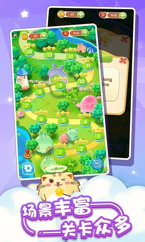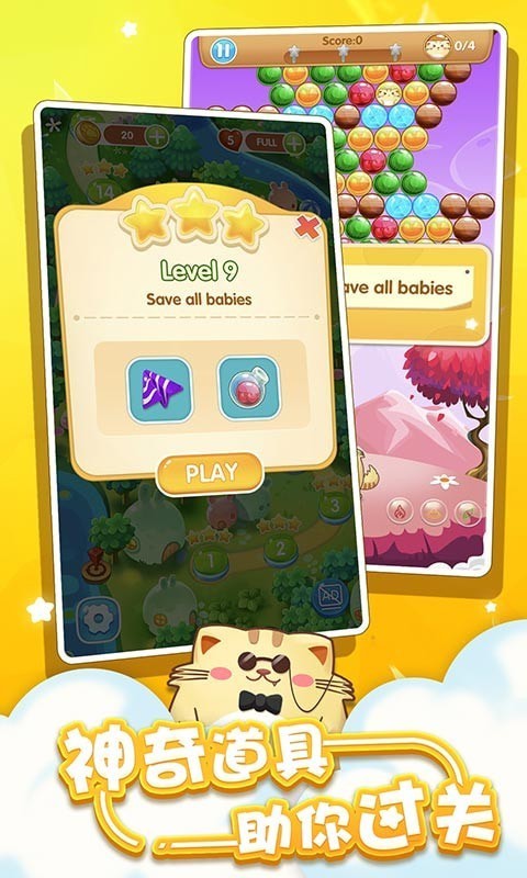 这款经典的游戏相信不要再做过多的介绍了,只是在这款游戏中,你有了更多新的挑战和内容,不单单是消除那些泡泡了。