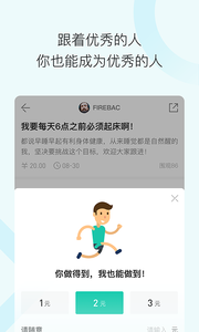 发起目标:发起一个目标,并缴纳一定的押金,邀请你的好友来监督你,达目标的其他用户也会加入对你目标的关注和监督。成功则返回押金,失败则押金分给围观者。