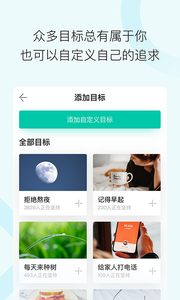 签到:目标发起后,每天完成目标并进行签到,可以进行文字图片等形式签到并叙述您的感受。