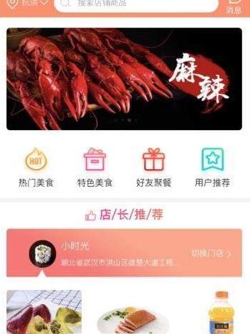 2.首页主要是展示各种美食类型及店长推荐,用户可以快速找到自己想要吃的食物;