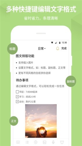 2、分类管理:自定义任务分类,有效区分生活工作等不同便签。