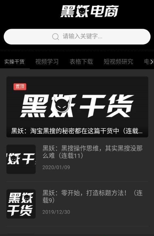 黑妖电商app一款专门为用户提供电商学习的服务平台,这里有专业的课程教学资源,在线直播课程,让用户了解学习电商知识,掌握其中的要领,并且每日推荐最新的行业资讯消息,让用户实时查看电商信息,专业老师在线教学,保证你学会电商必备技能,随着如今互联网社会的不断发展,各大电商平台逐渐增多,但是这些商家们也是需要学习各类知识技巧的,今天小编为大家推荐的就是非常实用的app,用户们可以在平台里面来学习各大平台的销售技能,以及商家运营技巧。