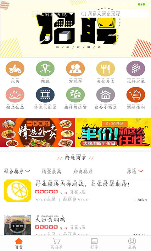 1、各种特色美食,任你及时挑选下单;输入关键字即可搜索你想吃的美食;
