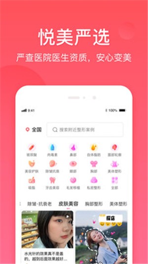 3、悦美严选app主要是为用户提供美容整形的服务软件,这款软件用户帮助用户轻松的变美。