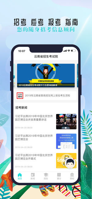 云南招考频道查询app手机版:这是为云南地区的考生们提供的专业报考服务平台,大家可以通过它及时的了解最新的填报志愿信息,浏览实时的政策顺利的填报非常的关键,而且还能搜索查询相关院校的基本信息,全面掌握更加方便!这里可以看到全国的一个院校额招生情况,一些大学的录取分数丢可以自己查询,自己查看,这里每天都可以公布一些云南本地的招收情况,可以有一个详细的了解!