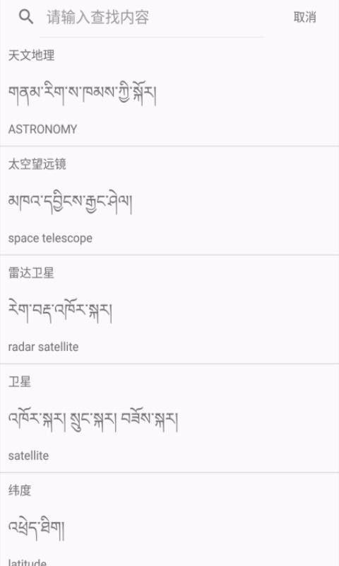 汉藏英辞典app是一款可以查询汉文、藏文、英文的应用,app为用户用户展示了详细的汉语、藏语、英语等内容,拥有海量汉藏词库资源,提供汉藏互译、拍照翻译、语音翻译、藏语学习等功能,资源丰富,界面清爽,让用户可以通过app轻松的查询相关的文字信息,这样可以可以让不同语言的用户使用;通过app您就能轻松的浏览详细的图文解析了,是许多藏族学生都在使用的汉文、藏文、英语查询工具;app拥有非常丰富的文字资源,您可以直接输入需要查询的文字内容以后,app就会自动的展示相关的藏文、汉文、英文等内容,以便您可以查询需要的文字信息。