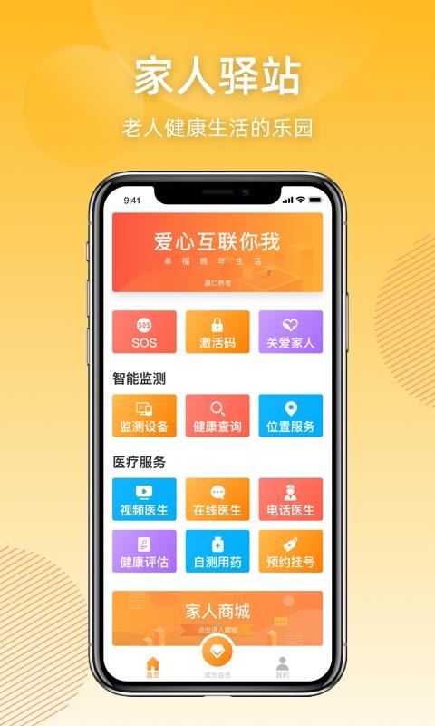 家人驿站app是一款智能养老管家,汇集了多种养老服务,能够帮助用户进行智能照护,身体数据实时统计,能够让家人轻松了解老人的身体状况,拥有智能检测和医疗服务、旅居服务,借助5G互联网及时,以大数据和人工智能为核心,为每个城市的老年人打造了一条龙式的养老服务体系,其中养老服务的内容覆盖了健康管理、智慧照护以及牢笼服务和旅居养老等,丰富的服务内容为每个家庭的老人打造了舒适的养老环境,不仅可以自由的选择个人需要的服务内容,而且可以体验专业级别的服务质量,所以,老人的晚年生活交于这些服务人员的话是值得信赖的。