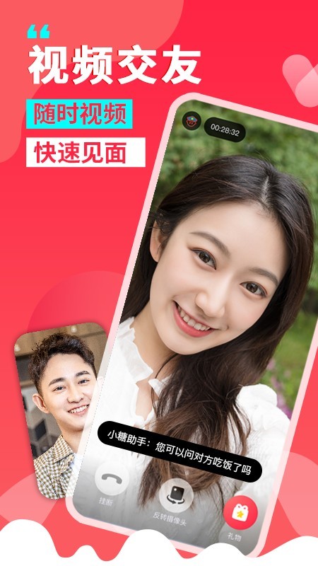 【视频交友】智能算法匹配用户,连麦视频沟通更畅快,人工智能小糖助手帮找Ȥζ话题,打破陌生人尴尬社交,随时都知道聊什么交友更简单,还有超多美颜、滤镜让交友更自信有趣。