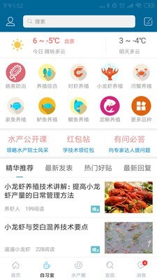 【社区功能】为广大水产养殖者提供水产养殖技术与知识学习,交流服务。开设有对虾养殖,河蟹养殖,家鱼养殖,小龙虾养殖等学习互动交流版块,我们还邀请了行业专家学者,养殖达人,分享他们的知识与经验,好好学习,天天向上。