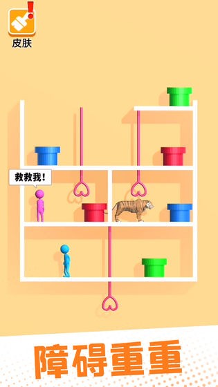 4、各种不同的管卡挑战,你要发挥自己的脑力来不断的闯关,找到一起中技巧,时刻注意小人的位置;