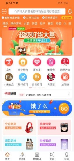 3、汇集了淘宝天猫、京东、拼多多、唯品会等各大热门电商平台、网赚项目和本地生活的优惠券;