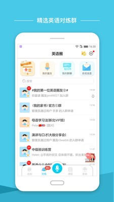 2、用户可以在英语圈app匹配到众多圈友,大家一起练习英语,你还能够加入英语对练群,让大家帮助你一起进步