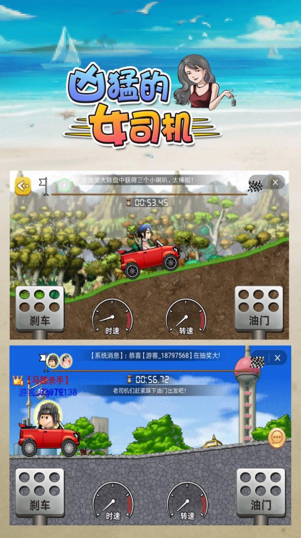 凶猛的女司机是一款颠覆人们常识的超牛女司机越野驾驶的游戏。游戏中玩家控制的女司机要在崎岖蜿蜒的赛道上面全力驾驶,以在最短的时间内完成各种挑战,获得每一个关卡的三星好评。只要每一个关卡都恩能够获得三星好评就能额外收获更多的奖励,利用这些奖励将自己的赛车换成更酷的吧。多人的联机的竞技玩法,游戏提供了山地、城市等多模式和复杂赛道上和其他玩家们体验一回速度和激情,感兴趣的玩家赶紧来下载体验下吧。
