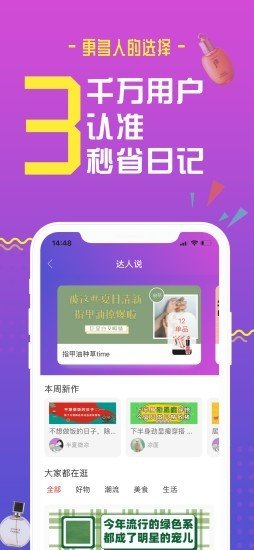 秒省日记APP是一款专为用户生活带来便捷的全新APP,在这款秒省日记APP平台里面海量的全新资讯可以帮助你们更好的进行折扣省钱网购哟,喜欢的用户们可以来121下载试试看了!是一款非常省钱的购物软件,这里优惠的商品真的很多,非常省钱,这里货品真的很齐全,购物不花钱真的是很爽哦,有兴趣的都可以来这里多多的逛逛,可以买到自己喜欢的衣服鞋子包包!在秒省日记中有非常丰富的商品供用户选择,并且还能领取到免费的优惠购物劵,所有的商品都是经过严格质量筛选的。品质有保障大家可以放心购买,喜欢的小伙伴可以来试试!