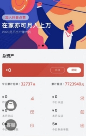 点石app是刚出的点赞接单平台,多以抖音任务为主,也会更新部分的快手、小红书等平台的任务,具体任务又包含了点赞、评论、关注,根据类别会有这不一样的收益哦,单价不等,但进账快速,随时提现,有需要就下载点石app吧。