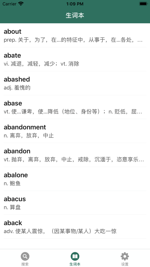 3、没有网的情况下照样能够使用,在离线词典中查找超过17,000个英语和86,000个中文单词。