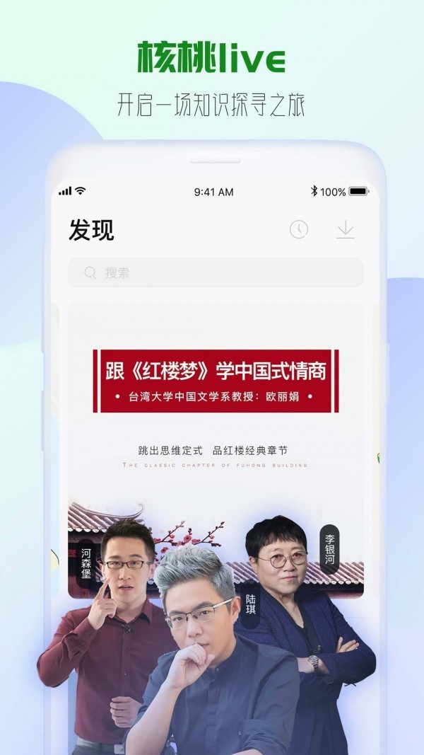 核桃Live是一个知识技能线上学习平台,这里聚集了众多行业领域的知识专家,包含了艺术、科学、教育、健康、时尚、美食、人文等等,行业名师线上通过直播以及视频的方式,为用户专业教学各方面的知识,生活有趣的视频课程,让知识学习更轻松,同时通过app您还可以结识到众多业内的高人,添加通讯录,在工作中遇到问题可以随时咨询,让您的工作更顺利,这里的课程众多且分类明确,想找的知识课程可以轻松找到,参考课程介绍以及视频目录,轻松购买到自己需要的学习接触。