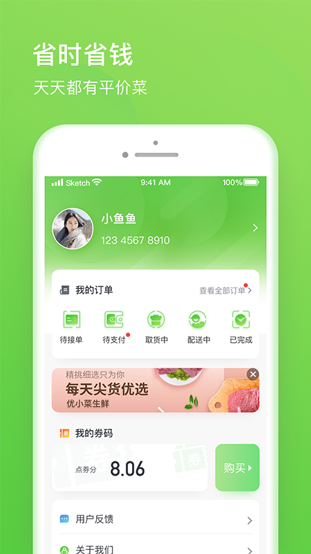 2.预约配送服务,根据用户的使用需求来进行配送,享受更加新鲜的生鲜食材。