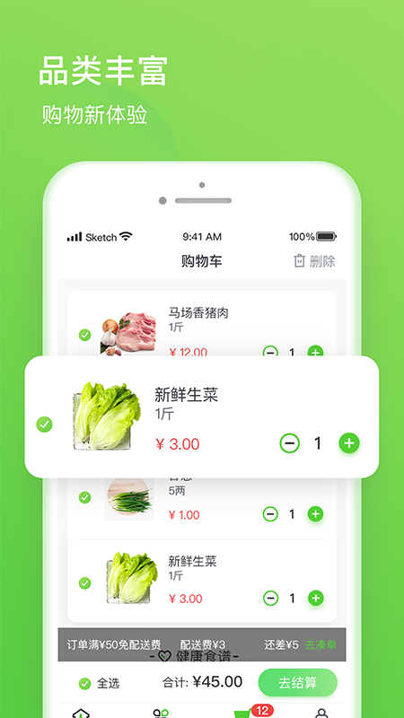 1.实现了更加便捷的操作选购功能,让你直接买到你想要的生鲜商品。