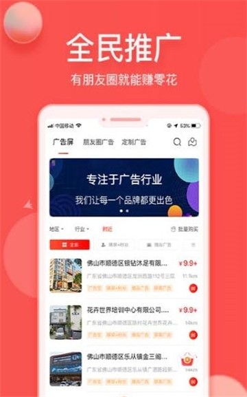 众创广告app是一款推广赚钱平台,用户可以在线帮助商家做各种各样的推广,只要达到了要求的效果就能获得佣金奖励,每天想做多少就做多少,时间以及任务量都由你自行安排,众创广告软件不仅让用户享受更多的赚钱模式,还帮助商家精准推广,邀请好友加入众创广告还有惊喜红包,感兴趣的朋友快来下载吧。