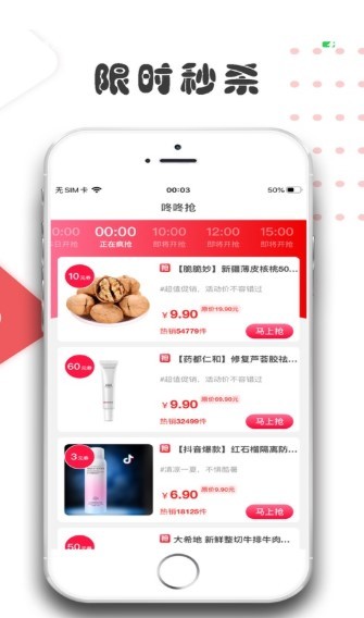 4、【限时抢购】指定时间抢热卖好货,数量有限,抢完为止。