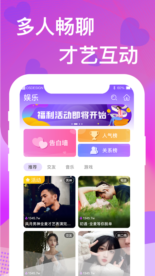 1.一次次聊天约会的活动等你来开启,你可以轻松得到交谈服务,为你带来话题。