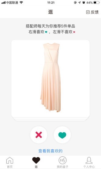 3.搭配师为您推荐单品,滑动屏幕即可表示喜欢与否;