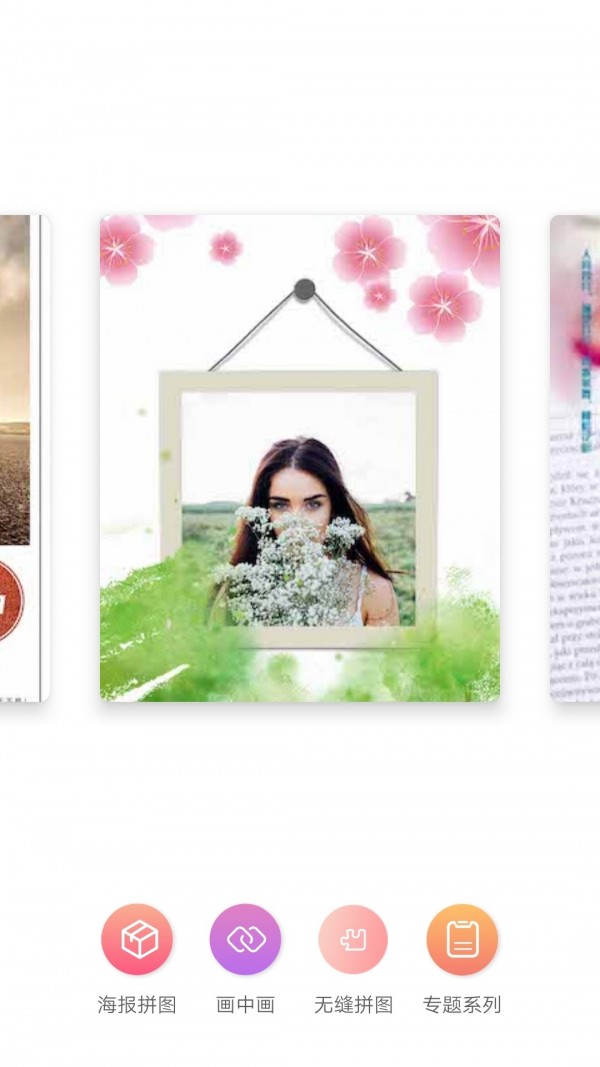 2、海报拼图秀软件拥有简约/清新/美食/旅行/画中画等海报元素,一秒打造视觉大片